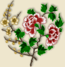 Used a gradient radial with colors #EFE7CD and #A32020, used seamless image effects in PSP9.